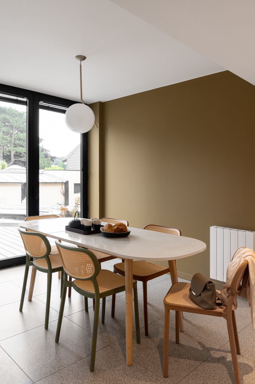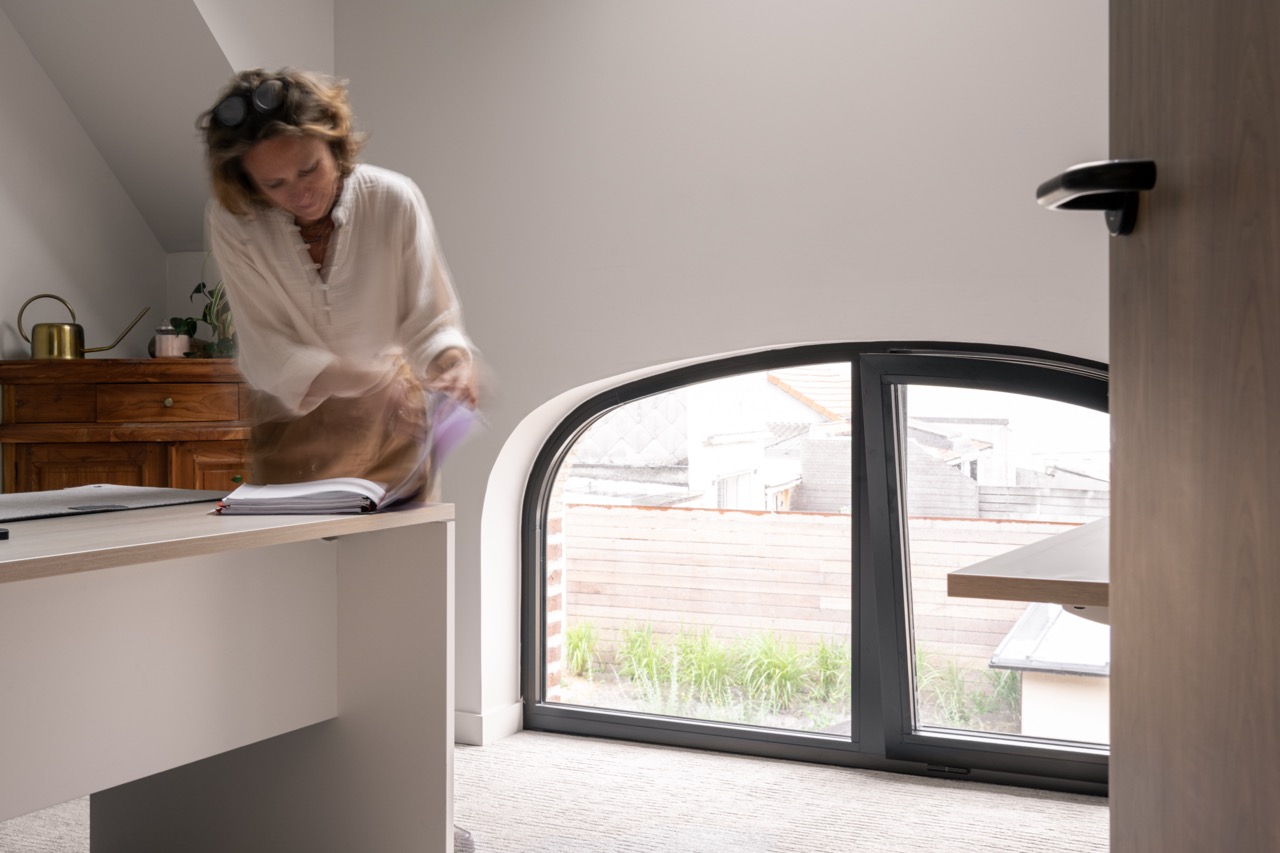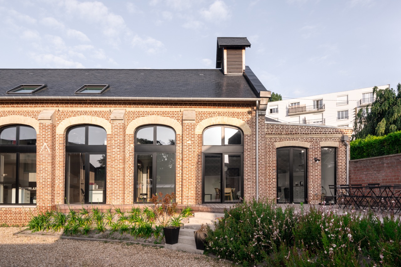 Les baies vitrées ont été agrandies afin d’ouvrir la façade Sud sur le jardin et les bureaux ont été répartis en RDC et R+1 suivant le rythme de la façade.