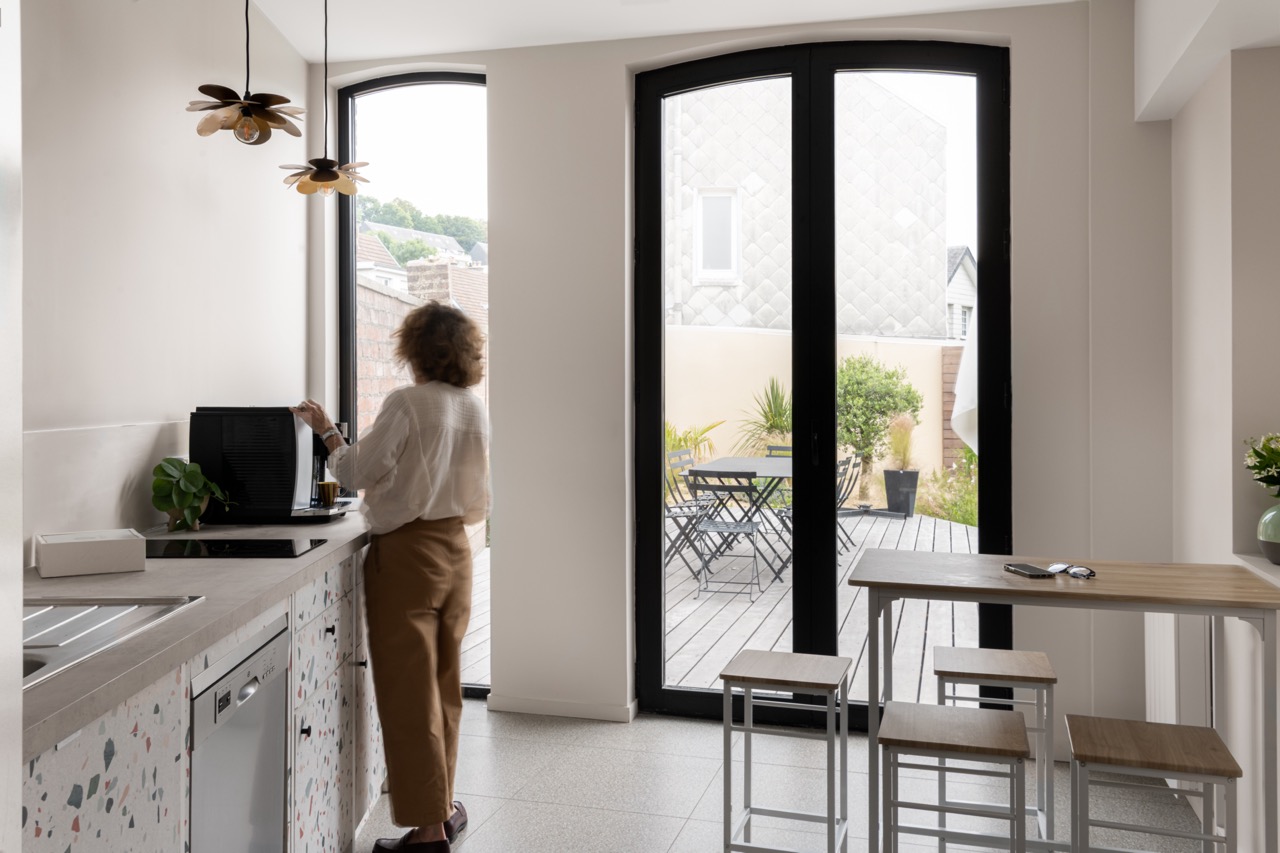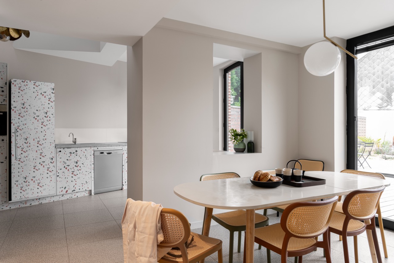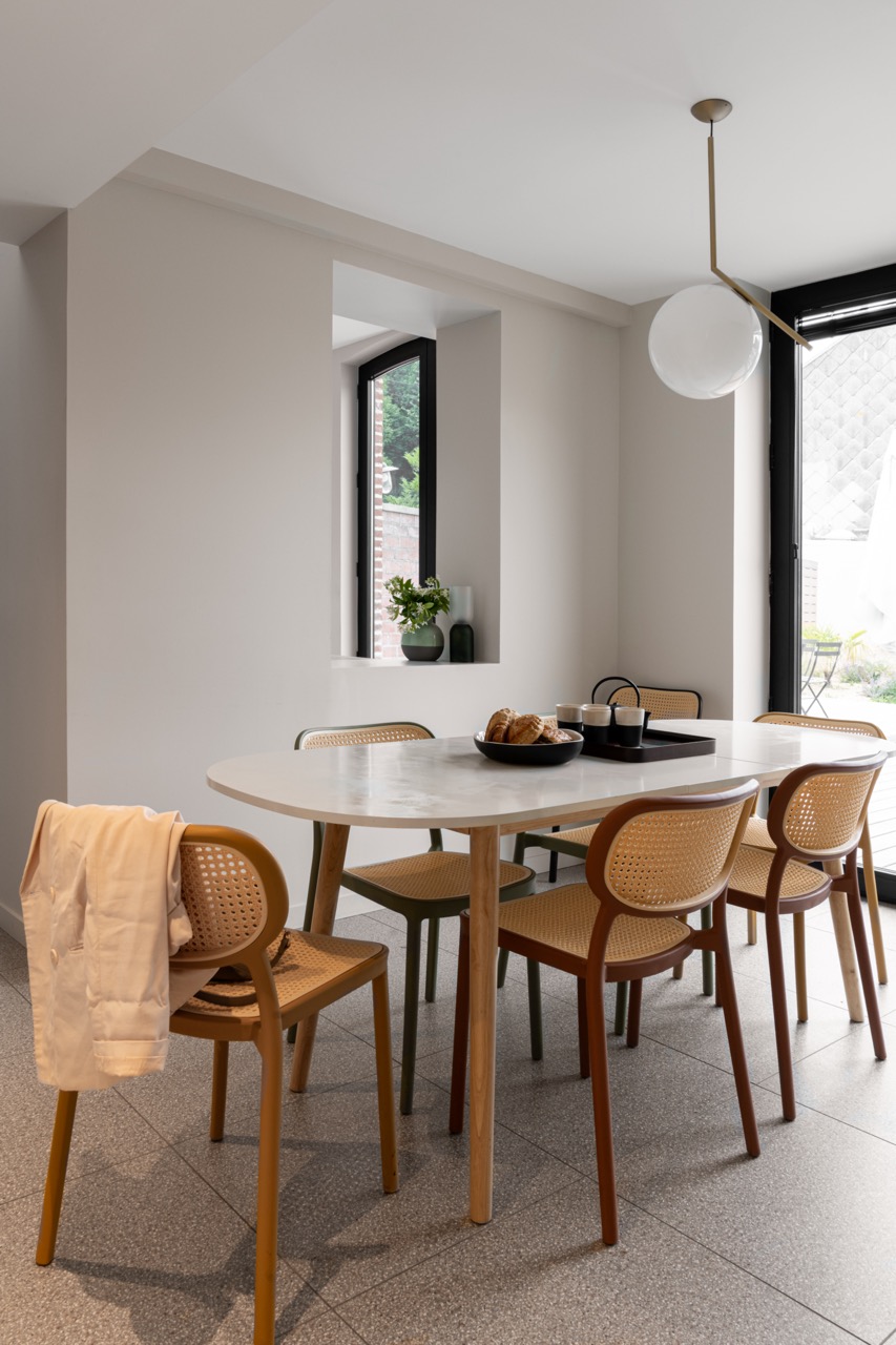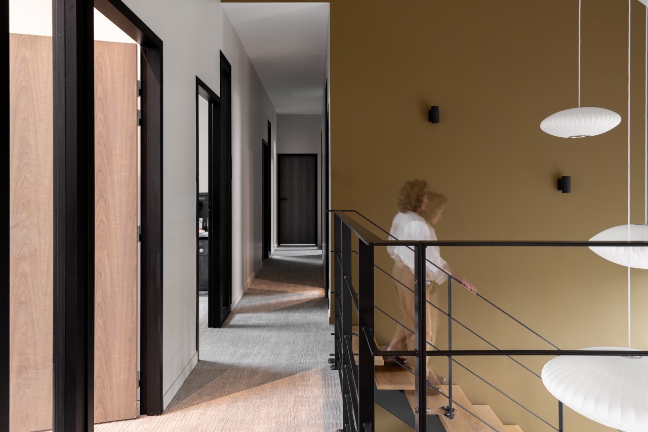 Les baies vitrées ont été agrandies afin d’ouvrir la façade Sud sur le jardin et les bureaux ont été répartis en RDC et R+1 suivant le rythme de la façade.